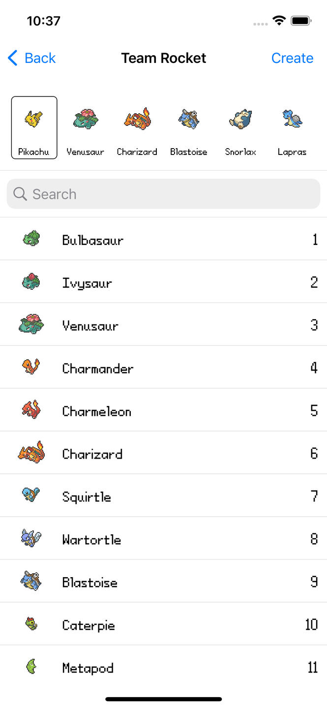 iOS app where you can assemble teams of 6 Pokémon and save them to your device. Also, view the stats of any given Pokémon.